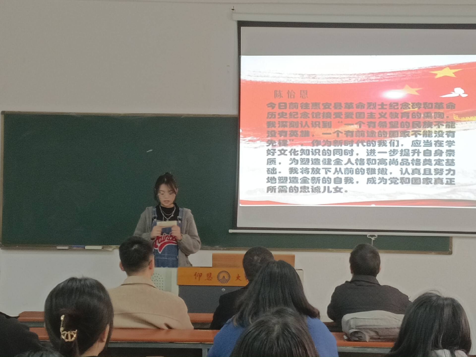 随后,七位同学依次进行红色景点实地考察成果分享。
