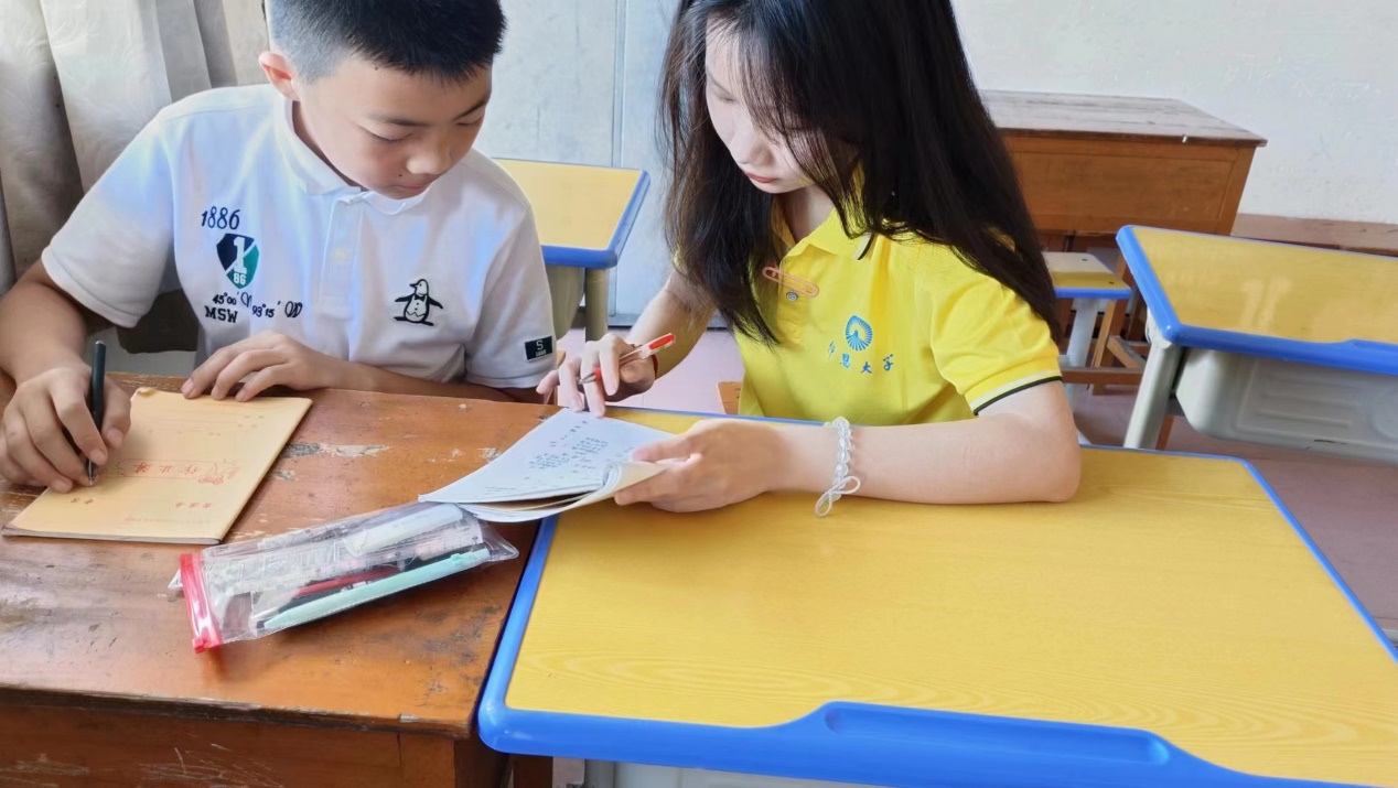 暑期实践队成员一对一辅导书法中