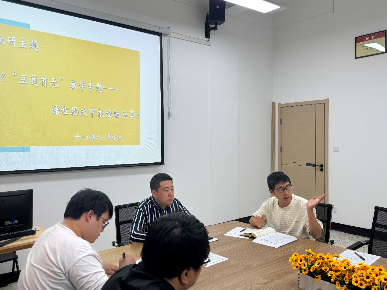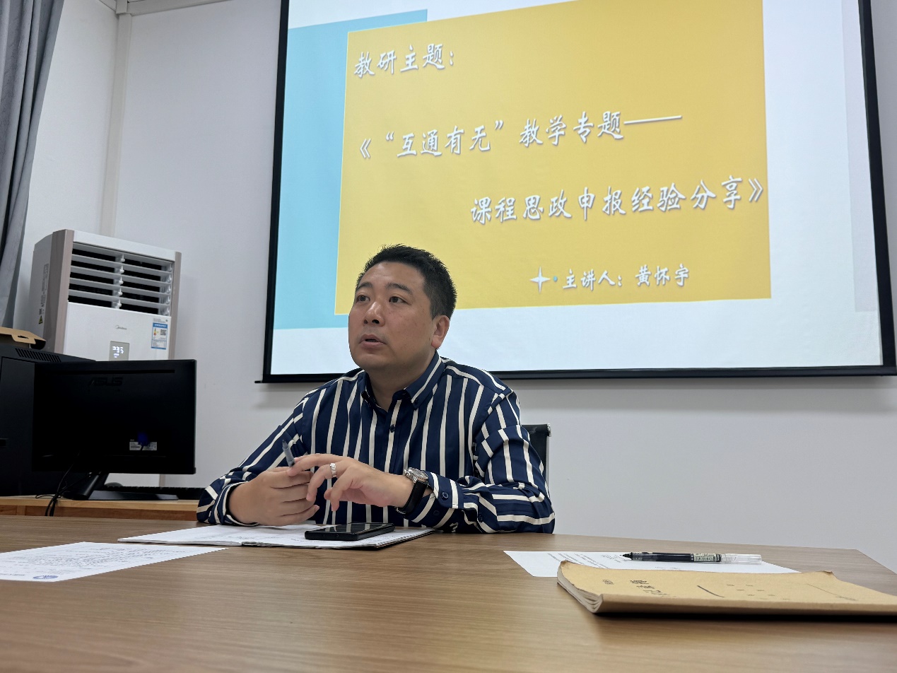 为促进新老教师的教学与参加各项教学赛事的能力提升,beat365英国官方网站在每次例会期间增加一项内容《“互通有无”教学专题》进行教研活动。2023年10月25日上午十点,在旧图205beat365英国官方网站会议室举行本期教研活动,主题为“课程思政申报经验分享”,主讲黄怀宇,会议由院长张文主持,全体beat365英国官方网站教师参会。