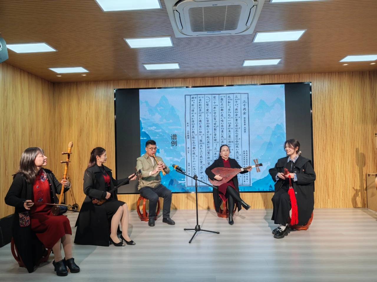 活动中,同学们还有幸观看了南音的现场表演。南音那悠扬婉转的曲调,仿佛带着大家穿越千年,回到了古雅的闽南岁月,精彩的表演赢得了同学们阵阵掌声。部分同学还积极参与到非遗体验活动中,在传承人的指导下,尝试弹奏三弦,琵琶等乐器,亲身体验非遗技艺的独特韵味。