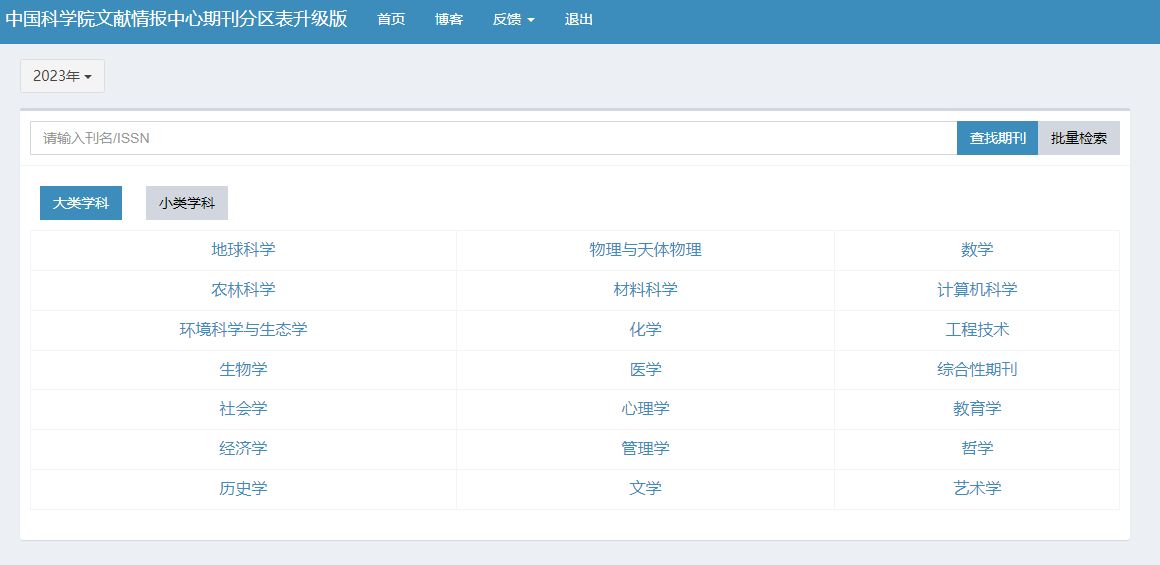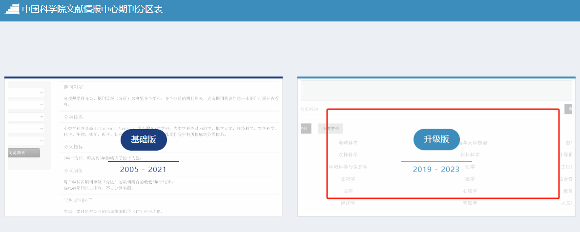 登录后选择升级版——选择学科类别,即可查询期刊种类分区。