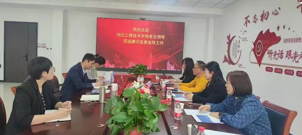 调研组首先来到位于新一代电子信息产业园区软件大厦四层的河北唐讯信息技术股份有限公司走访调研,在公司总经理王玉江、党支部书记李志虎、副总经理杨雅慧的陪同下,参观了公司发展历程荣誉展厅和新一代通讯技术产教融合成果展厅,听取了公司与省内外高校开展产教融合协同育人工作的情况汇报。参观结束后,校企双方举行了产教融合协同育人座谈会,并举行校企合作签约授牌仪式。taptap软件学院院长赵冬梅和河北唐讯信息技术股份有限公司副总经理杨杨雅慧代表校企双方签署了校企合作协议;对外合作部部长王俊昆为企业颁授“校外实习实训基地”牌匾。