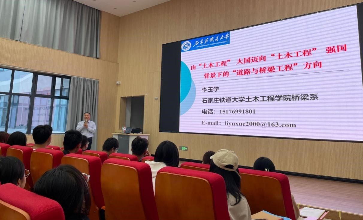 10月14日,土木工程学院在灵寿校区为2023级工程造价专业学生举办了专家讲座,讲座邀请了石家庄铁道大学副教授、博士生导师李玉学。李教授在会上对专业知识进行了介绍,并分享了教学经验、探讨了行业前沿发展。