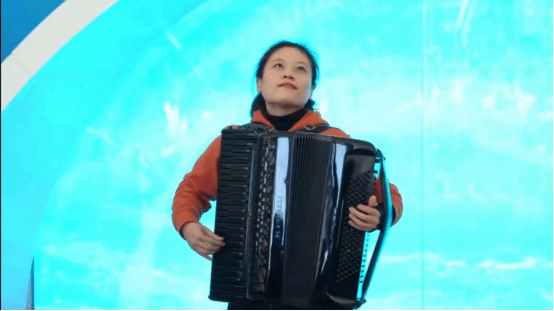 活动首站来到雄安城市计算中心,它被称作“城市大脑”,一座犹如“大眼睛”般的宏伟建筑。新区文艺慰问小分队走进该中心向正在辛勤工作的值守人员献上“艺术盲盒”,丁晔老师在此为大家献上了手风琴独奏《牧民之歌》。随即,刘皓心老师为工友们演奏了一曲琵琶独奏《送你一朵玫瑰花》。