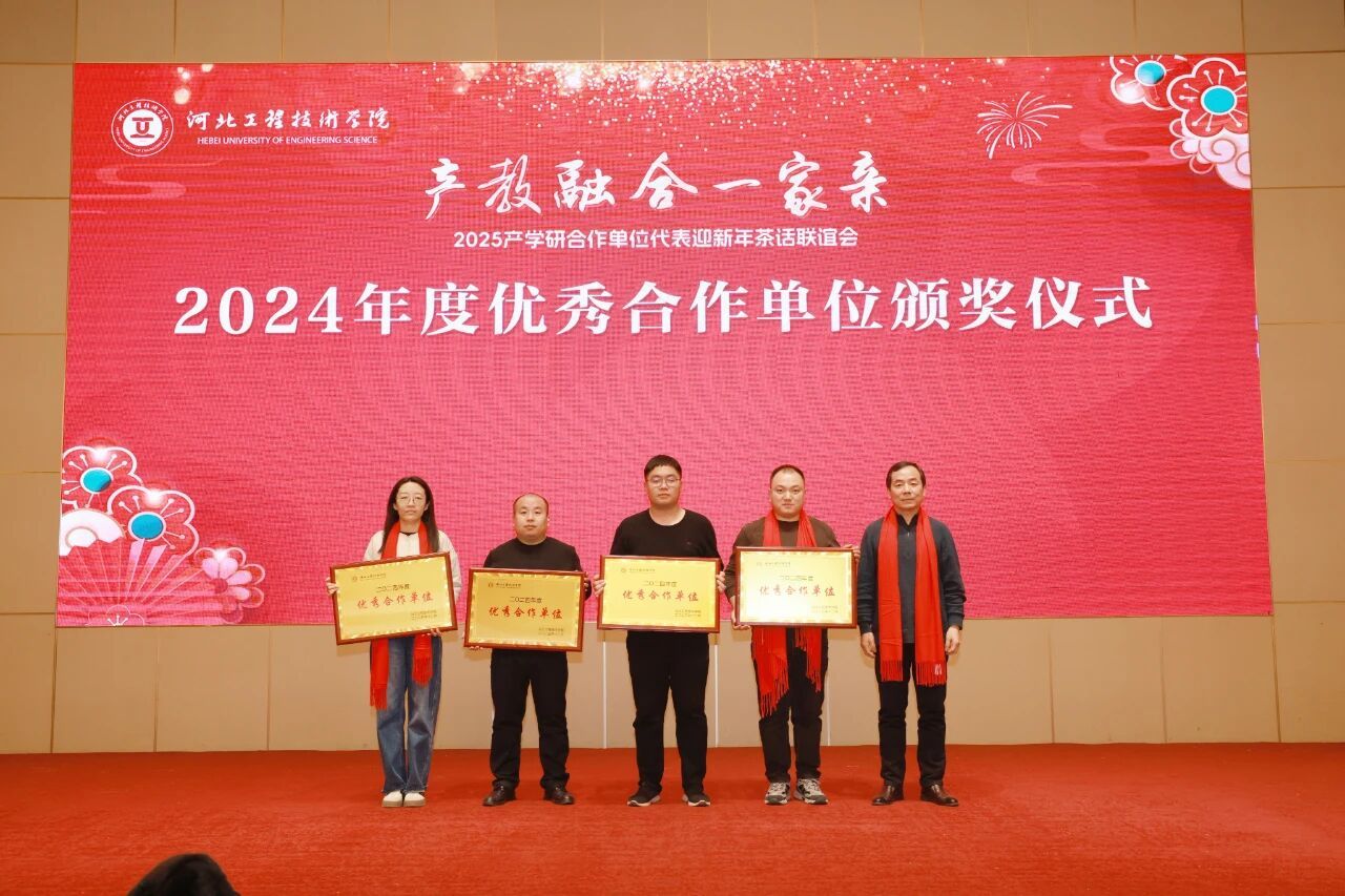 联谊会上,学校对2024年度四家优秀产学研合作单位进行了表彰,副校长武勇为其颁发奖牌。河北宇赐教育装备集团、河北马家麦坊食品有限公司、栾城区天亮种植专业合作社、河北绿阳农业科技有限公司、河北吾谷农业科技发展有限公司、洪洞县构树种养有限公司、石家庄杉禾健康科技有限公司、河北良耿科技有限公司、中邦飞巴集团、王昆兰花艺术工作室、河北省文化名人公益联盟书画院等16家支持单位为活动提供了丰富的抽奖纪念品,增添了喜庆温馨的节日氛围。艺术与传媒学院师生带来了歌曲、器乐演奏等精彩文艺节目,不仅展示了taptap美育育人成果,也为现场注入了青春活力与艺术气息。