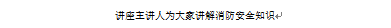 讲座的开展,可以使我们对消防安全相关理论的了解。给予我们关于消防安全相关强化科普、警示教育和提示宣传。通过讲座的方式宣传,对于提高公众的消防安全意识,对提升公众减少火灾危害的知识都有所帮助,还能增强公民在防火安全方面的社会责任。