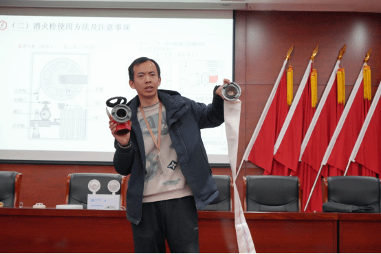 培训过程中,梁老师结合近年来国内各地发生的真实火灾案例,尤其是校园及周边常见的火灾事故,深入剖析火灾发生的诱因、蔓延的特点以及造成的人身财产危害,用鲜活的教训为全体师生敲响消防安全警钟。同时,梁老师还系统讲解了日常办公、学习、生活中的防火注意事项,火灾报警的正确流程与要点,火场疏散逃生的技巧方法,以及初期火灾的扑救原则等关键知识,将专业的消防知识转化为通俗易懂的语言,确保师生听得懂、记得住、用得上。