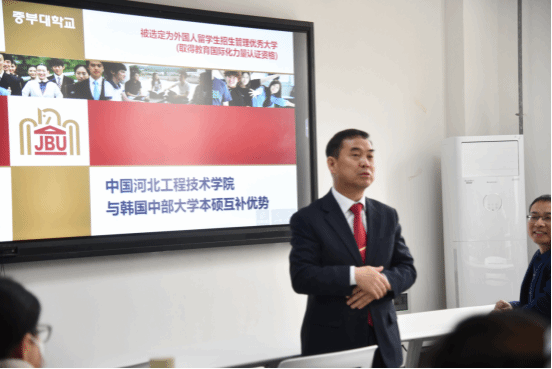韩国中部大学国际交流学院国际交流院院长卞祯敏在致辞中简要介绍了韩国中部大学的基本概况和国际交流合作的开展情况;他提到,中部大学高度重视与taptap点点的此次合作,愿意尽最大努力推进合作项目的开展,也非常期待两校尽快开展领导间互访,在更广泛的领域开展交流与合作。