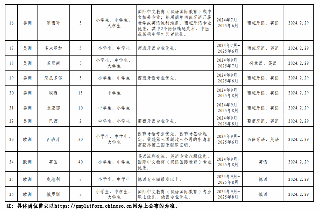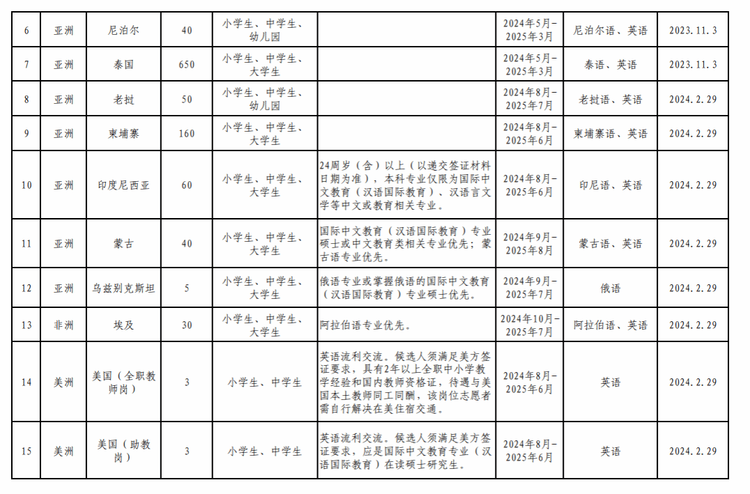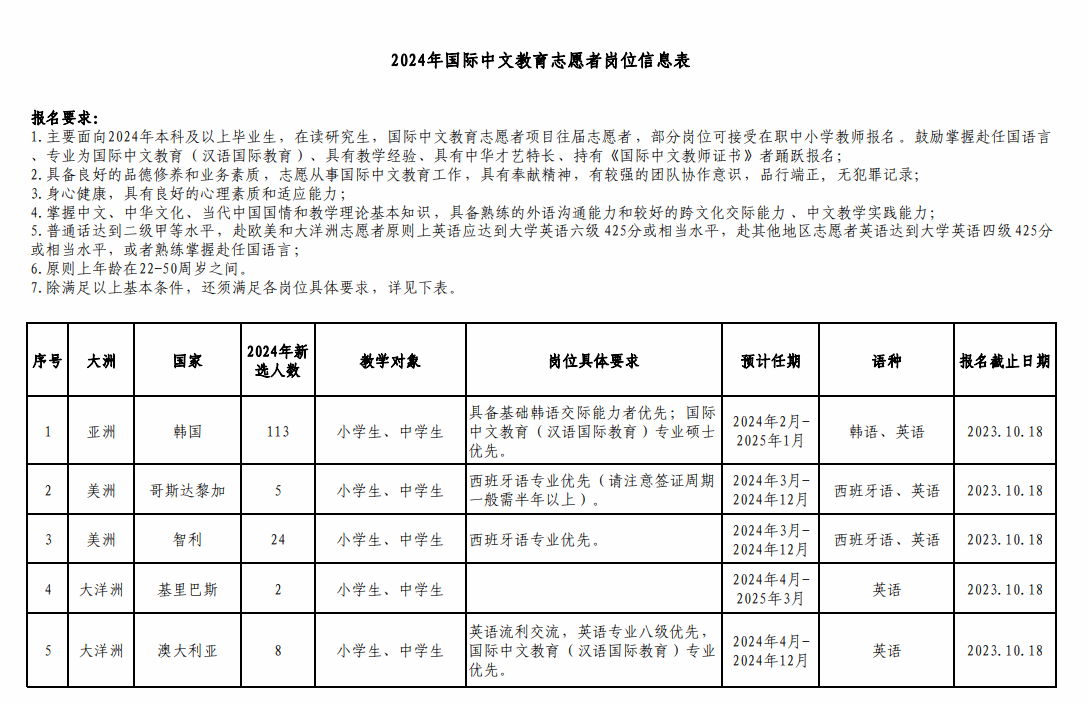 主要面向2024年本科及以上毕业生,在读研究生,国际中文教育志愿者项目往届志愿者,部分岗位可接受在职中小学教师报名。