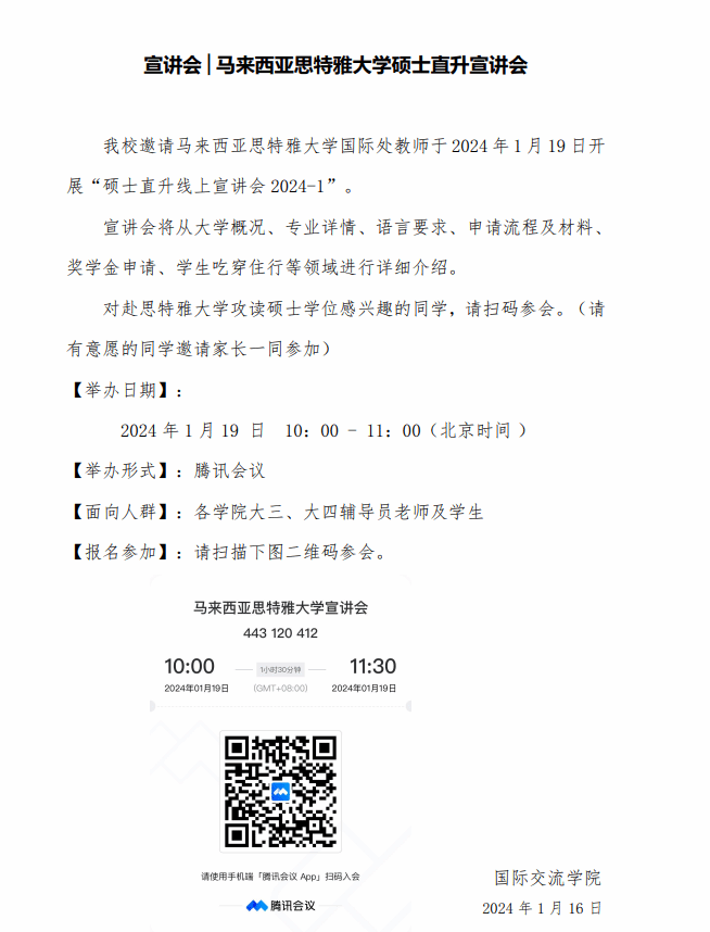 宣讲会│马来西亚思特雅大学硕士直升宣讲会