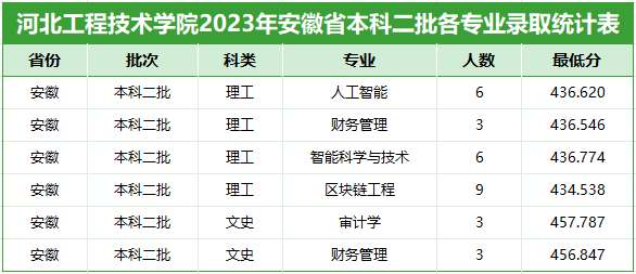 2023年本科二批的录取工作已结束,共录取安徽省生源考生30人,各专业录取最低分见下表。