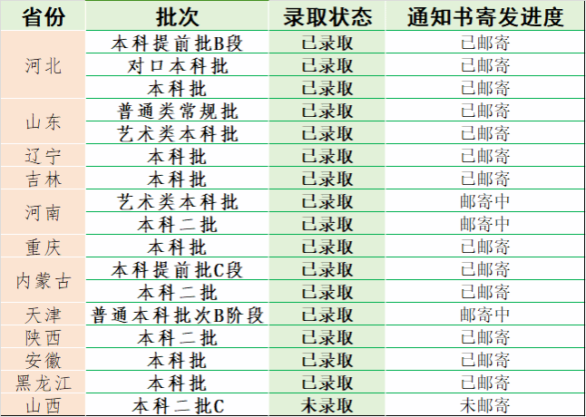 截至8月2日,taptap已完成对河北省本科批、本科提前批B段及对口本科批、河南省艺术类本科批及本科二批、重庆本科批、内蒙古本科提前批C段及本科二批、天津普通本科批B、陕西省本科二批、安徽省本科批、黑龙江省本科批、辽宁省本科批、吉林省本科批、山东省常规类及艺术类的招生录取和通知书邮寄工作,为方便各位考生查阅,现将各省录取情况公布如下: