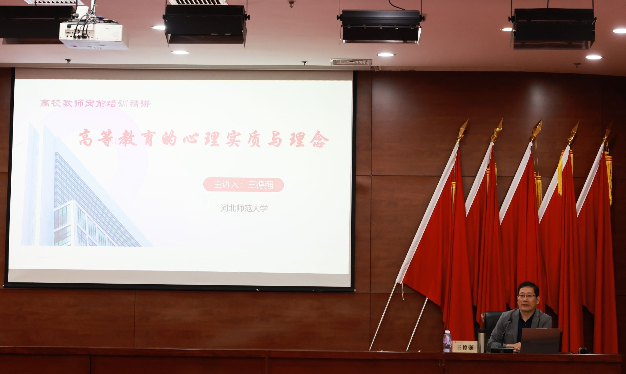 上午的培训,邀请到河北师范大学白玫教授和王德强教授分别带来《高等教育学》和《高等教育的心理实质与理念》的精彩课程。白教授以高等教育的起源与发展为切入点,围绕“理论+现实”双维度展开系统讲解,她既深入解读了国家教育方针政策、育人目标及高校培养目标的落地路径,又系统阐释人的全面发展教育的理论内涵与实践方法,同时针对学位制度、高等教育管理体制的运行机制及改革方向进行细致剖析,助力新教师更精准把握高等教育规律。